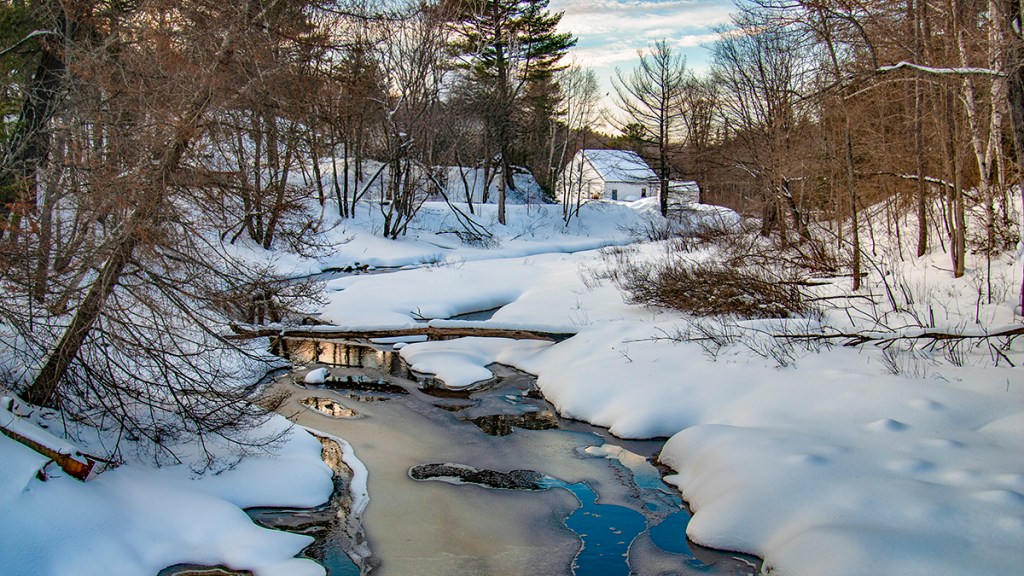 Finished writing for the day, I don snowshoes for a walk. The wildlife tracks are numerous: fox, deer, coyote, porcupine, rabbit, squirrel, endearing tiny tracks, and for the first time in a long while, wild turkey . . . and I wonder how a wild turkey would taste . . .