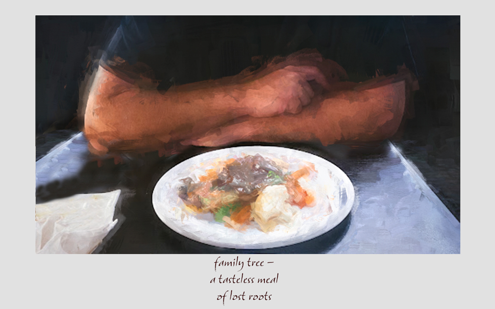 “I’m revising some of my writing,” I reply, and hand him a copy of my last haibun collection, hoping it will keep him quiet while I work.